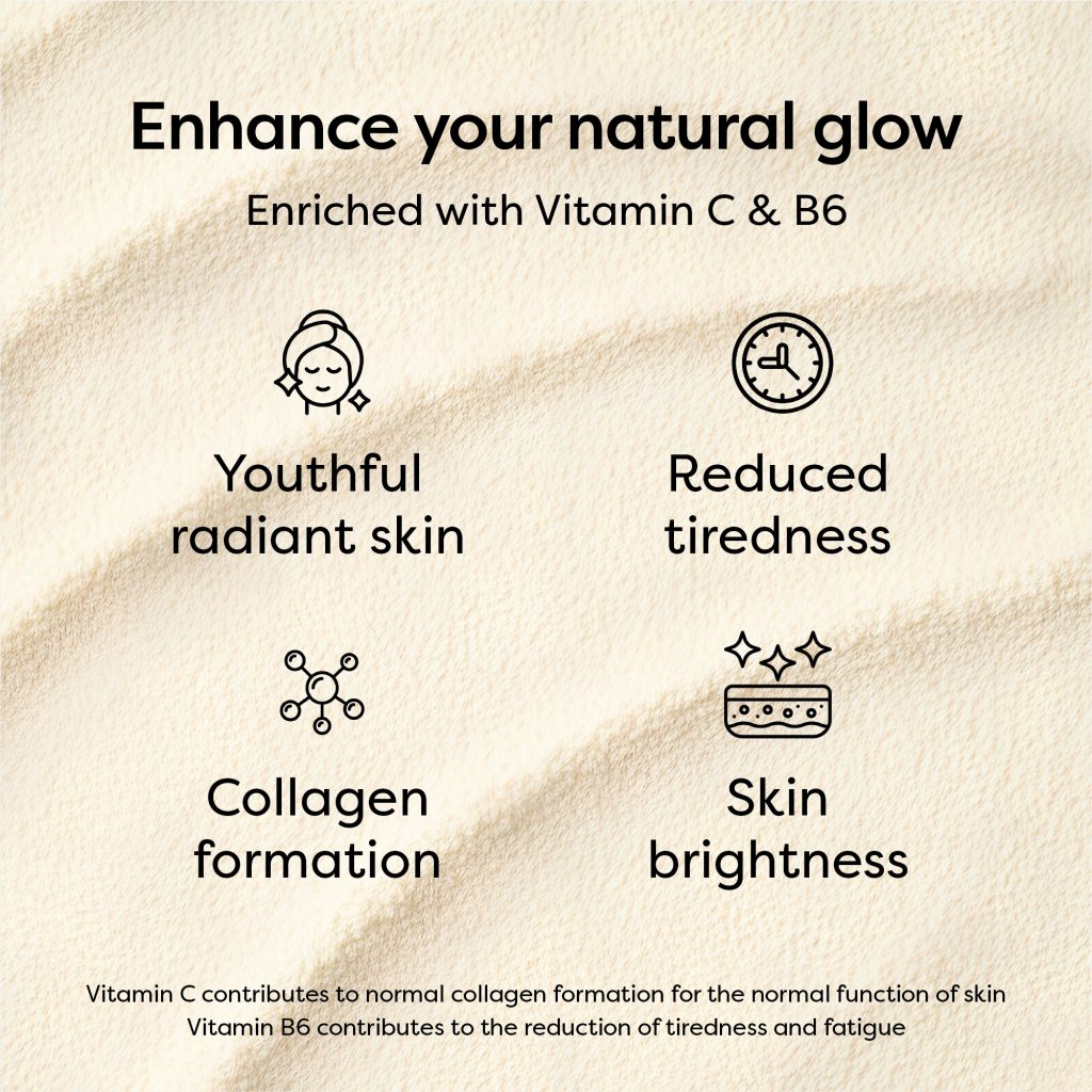 Enriched with magnesium and vitamin C, our juice enhances collagen production and synthesis, while vitamin B6 promotes cell renewal.