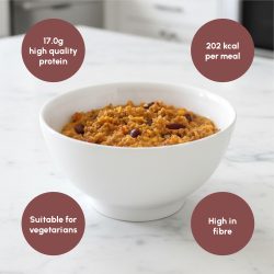 Let the warming spices of our delicious Mexican Taco meal replacement tickle your tastebuds as you work towards shedding those pounds and hitting those weight loss goals. Containing beans, red pepper, tomato, onion, garlic and chilli, you can still get the taste of your favourite Mexican meals without the calories.