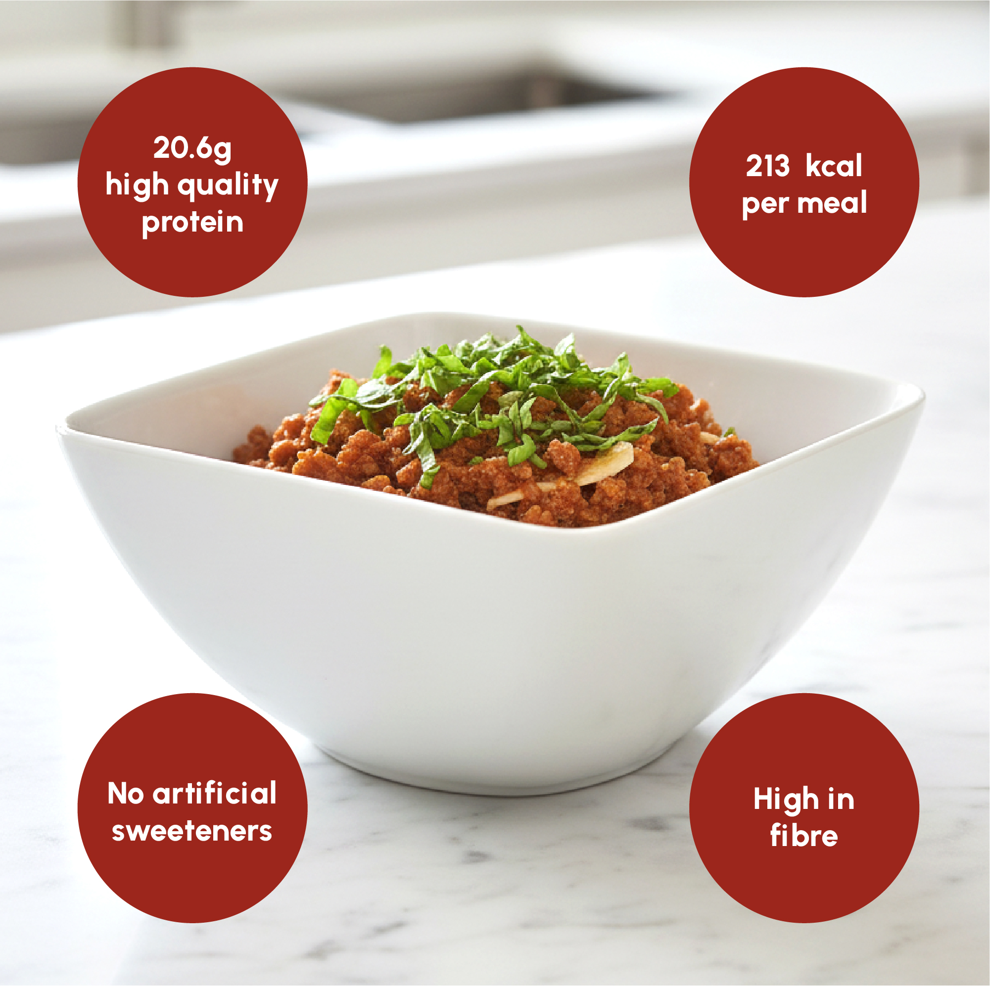 Vegetable protein blend (soy protein textured (malt extract), vegetable protein); egg noodles (durum wheat flour (gluten), egg yolk, niacin, ferrous sulfate, thiamine mononitrate, riboflavin, folic acid); dehydrated vegetable (dehydrated onion, tomato powder, red bell pepper, sweet corn piece) ; vegetable oil preparation (sunflower oil and refined soybean oil, maltodextrin, milk protein, emulsifier: soy lecithin E322, antioxidants: ascorbyl palmitate E304, alpha tocopherol E307); chilli powder seasoning (chilli, cumin, garlic, pepper, oregano, salt, colour: caramel E150c, dextrose, aromatic caramel); acidity regulators: potassium chloride E508, potassium citrate E332, magnesium oxide E530; flavours; thickener: modified starch E1422; maltodextrin; vitamin and mineral mix (dicalcium phosphate, L-ascorbic acid (vit. C), nicotinamide (vit. B3), ferric pyrophosphate, zinc oxide, D-alpha-tocopheryl acetate (vit. E), D-pantothenate calcium (vit. B5), sodium fluoride, manganese sulfate, pyridoxine hydrochloride (vit. B6), riboflavin (vit. B2), copper gluconate, thiamin hydrochloride (vit. B1), retinyl acetate (vit. A), pteroylmonoglutamic acid (vit. B9), potassium iodide, phylloquinone (vit. K1), sodium selenite, D-biotin (vit. B8), chromium chloride, ergocalciferol (vit. D2), cyanocobalamin (vit. B12)); colour: beetroot red E162; salt; stabilizer: calcium phosphates E341; antioxidant: tocopherol-rich extract E306; sweetener: sucralose E955.