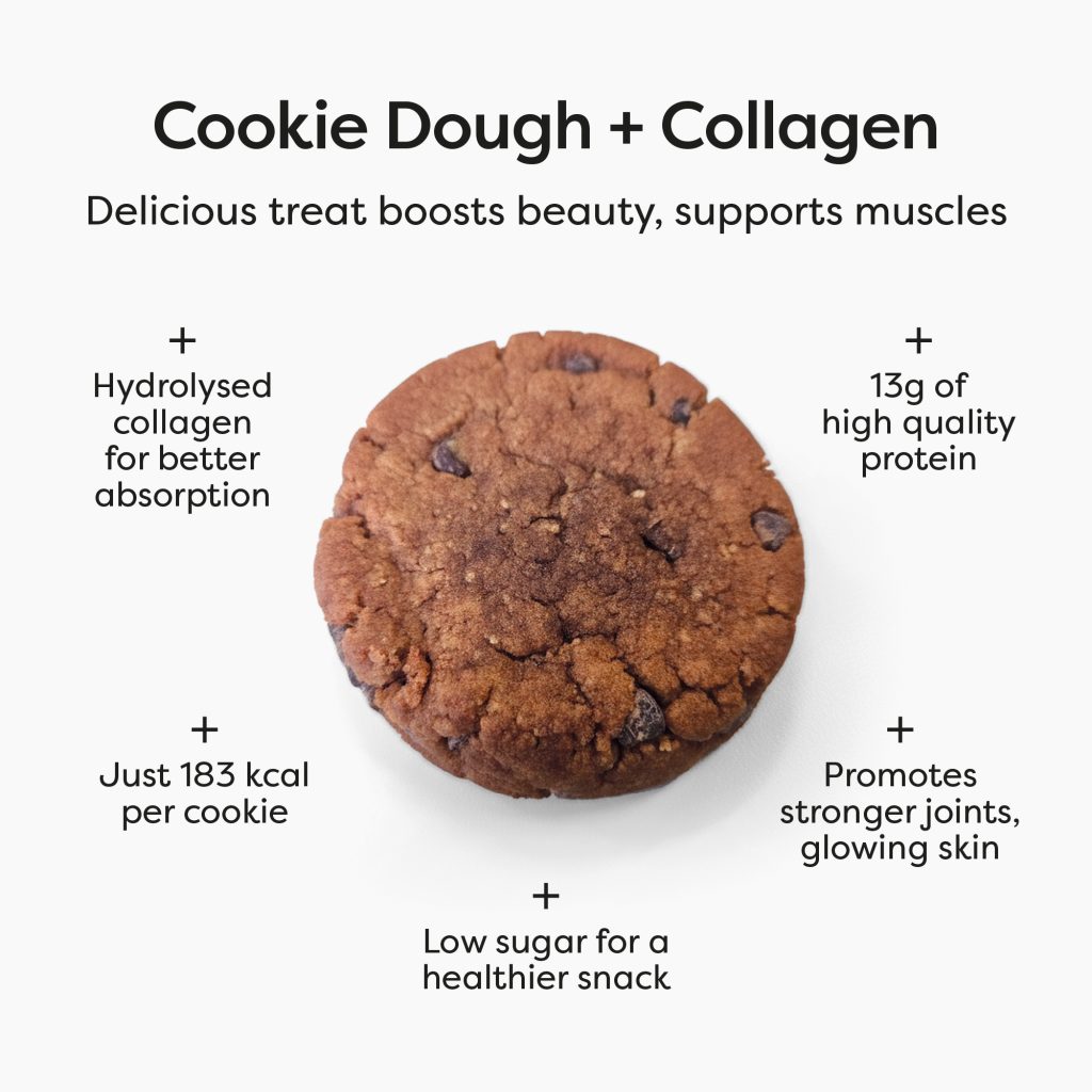 Introducing our Choc Chip Cough Dough + Collagen—a delicious and nourishing treat designed to support both your fitness and beauty goals. Each 50g portion provides a satisfying balance of protein, healthy fats, and collagen to enhance your overall wellness.