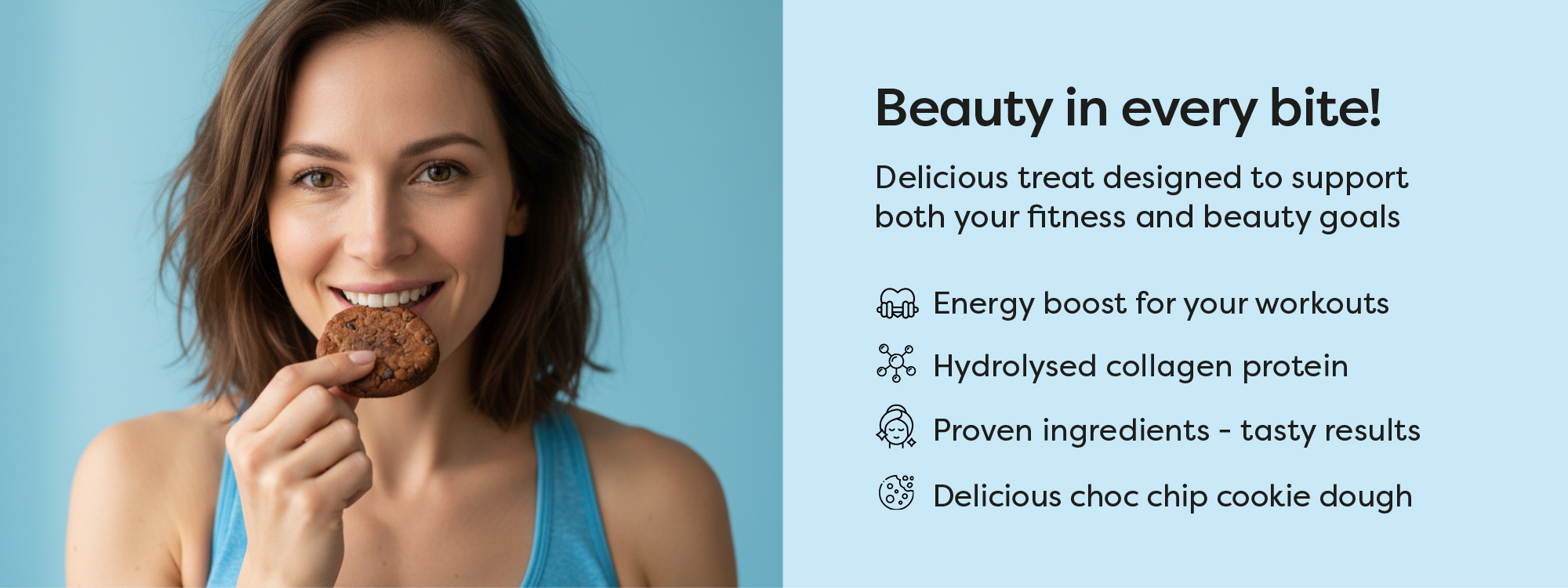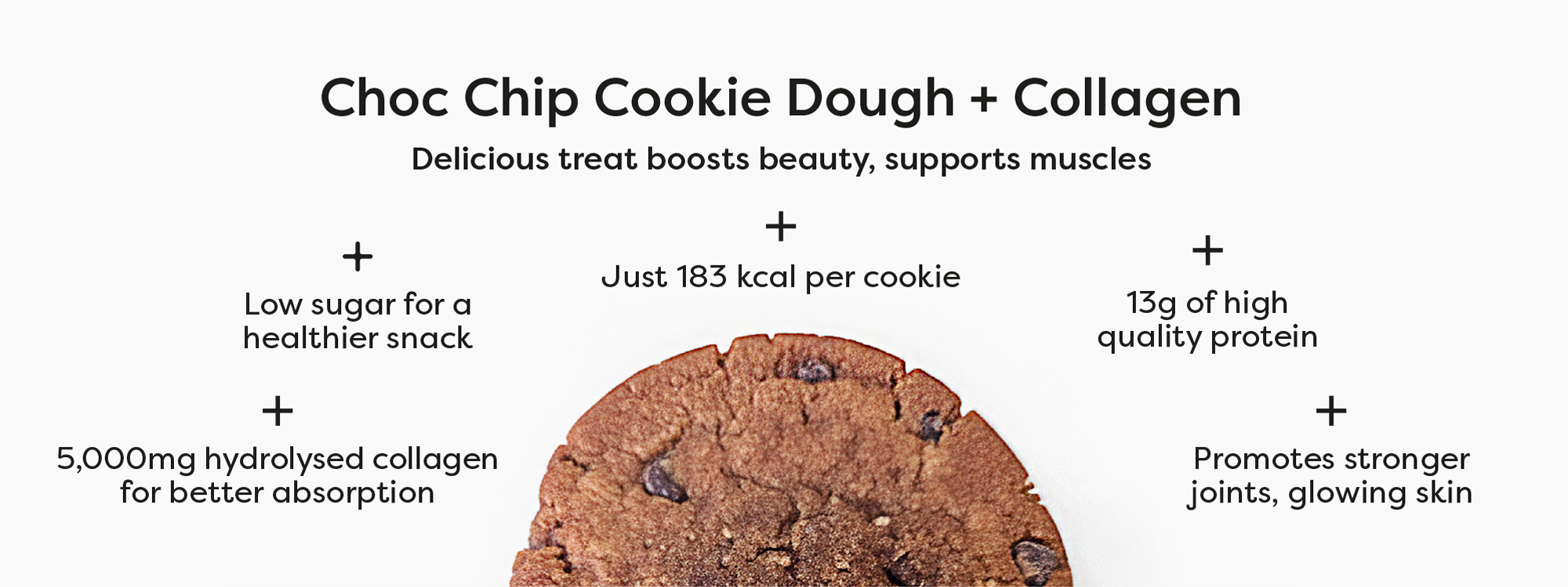 Introducing our Choc Chip Cookie Dough + Collagen—a delicious and nourishing treat designed to support both your fitness and beauty goals. Each 50g portion provides a satisfying balance of protein, healthy fats, and collagen to enhance your overall wellness.